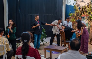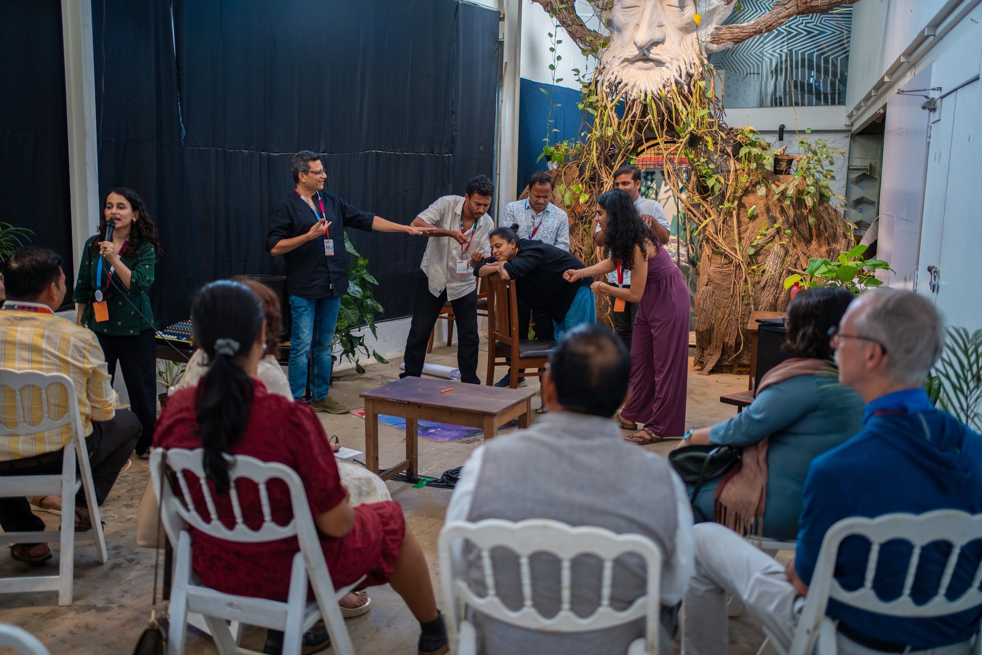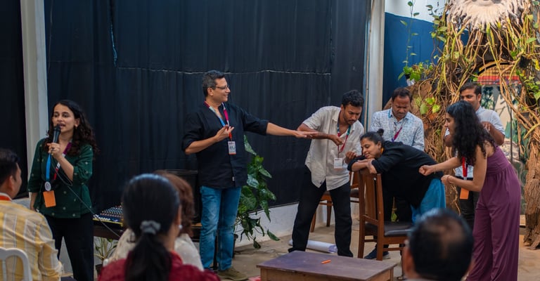 we have conducted specialised workshops, using theatre exercises and tools of improvisation, storytelling, play, and imagination to work on topics of interest to different organisations